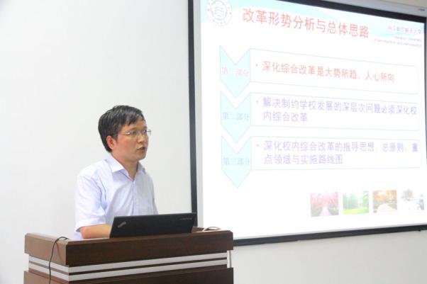 院长何建平传达了校第十五届委员会第十二次全委(扩大)会议和校长聂宏“深化校内综合改革形势分析与总体思路”报告精神。他强调,炸金花平台 将实施以人事制度改革为突破口,统筹推进人才培养机制、科研管理机制和校院管理体制机制等方面的综合改革,每一位教职员工都要紧紧把握改革这一发展大局,以改革为己任,以改革促发展,在自身工作岗位上以实实在在的工作业绩,落实各项改革举措,努力促进炸金花平台 、炸金花平台 各项事业不断发展。