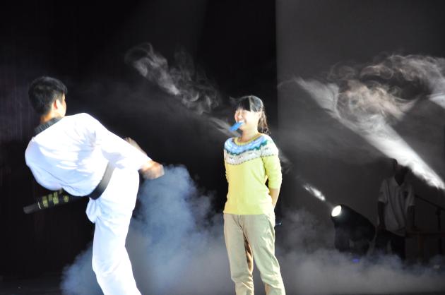 热情的开场舞点燃了全场气氛的同时,也带领观众们步入了晚会的第一篇章:律动迷彩。由张心怡和张琪玮两位同学带来的歌曲串烧,一动一静,引得观众掌声连连,将晚会推向首个高潮,接下来精彩的相声、舞蹈表演更是让台下的观众时而捧腹大笑,时而热烈欢呼。游戏环节更是让新生们见到了导员、教官、班主任大人们威严的外表下,可爱迷人的一面,为晚会增添了几分活泼气氛。一群俊男靓女带来的《炸金花平台 军训的日子》将大家带入了对军训生活的回忆和对炸金花平台 未来的期待,也将晚会送入第二篇章:乡之情,梦之逐。一段民乐串烧迅速使同学们低首沉默,陷入对家乡的深深思念。而小品《黑暗博士》让同学们在一阵又一阵的捧腹大笑中冲淡了对家乡思念的同时,也将晚会带入了高潮不断迭起的阶段。三位美女激情热辣的舞蹈和两位萌妹子调皮可爱的《love me》引得台下掌声阵阵,尖叫连连。教官们和同学们的合唱《真心英雄》引起了全场同学大声放歌,将晚会气氛推向致高点。最后,四位英姿帅气的学长携手奉上的歌曲《你是我的眼》以婉转动听的旋律为本次晚会画上了完美句点。
