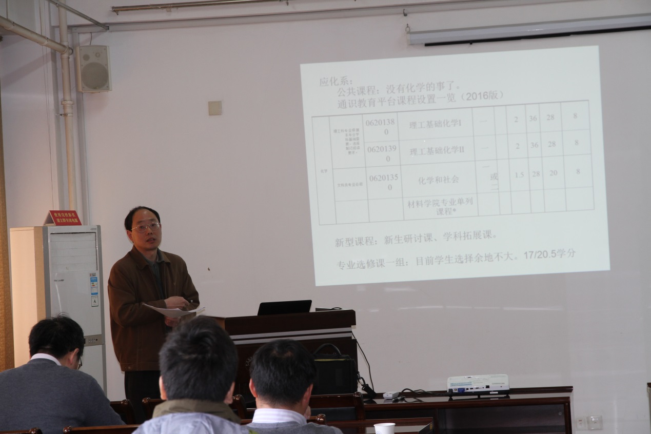 2016年4月1日,应化系召开“十三五”本科专业建设规划及2016年本科教学建设工作研讨会,教学主任祁欣在认真学习消化炸金花平台 文件精神的基础上,结合教育部“本科教学审核评估”工作,提出了“一个抓手、一个主体、二个基本点、五个方面”的建设思路与理念。一个抓手是指“实施‘品牌专业建设工程’”;一个主体指“学生在教学中的主体地位”;二个基本点为“学时要缩短、教学要改革”;五个方面包括“考试方法、教学模式、创新培育、国际化培养、管理方面”。