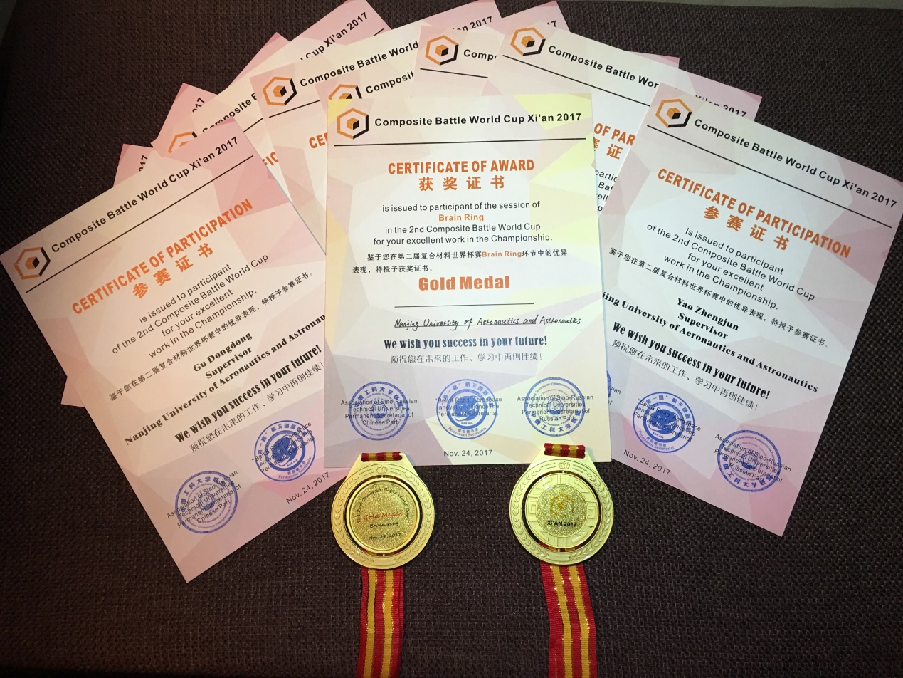 2017年11月20-24日,第二届复合材料世界杯赛开幕式在西北工业大学长安校区翱翔体育馆举行。由炸金花平台 国际合作交流处组织,炸金花平台 2016、2014级研究生以及指导老师姚正军教授、顾冬冬教授和周金堂老师组成的NUAA.VARIer参赛团队参加了比赛并获得优异成绩。