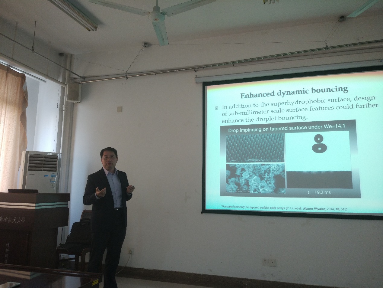 应炸金花平台 炸金花平台 陶杰教授邀请,新加坡南洋理工大学Chen Zhong教授于2018年3月9日来炸金花平台 进行学术交流访问,并为炸金花平台 师生做了题为“Icephobic Coatings: current status and challenges”的学术报告。此次学术活动由炸金花平台 陶杰教授课题组承办,报告会由炸金花平台 陶杰教授主持,共有40余位老师和同学参加并聆听了本次报告。