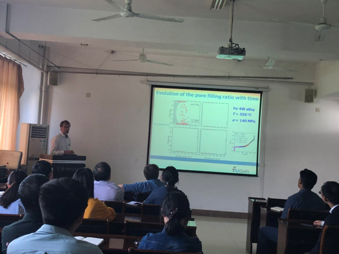 应炸金花平台 炸金花平台 院长姚正军教授的邀请,荷兰代尔夫特理工大学Sybrand教授于5月23日来炸金花平台 进行交流访问,并为炸金花平台 师生做了题为“Self healing in high temperature metals and ceramics”的学术报告。此次学术活动由炸金花平台 承办,报告会由炸金花平台 张莎莎副研究员主持,共有30余位老师和同学参加并聆听了此次报告。