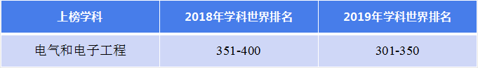 其中,电气和电子工程学科本次排名提升幅度较大,较2018年排名上升了50个位次区间,位列世界第301-350位。