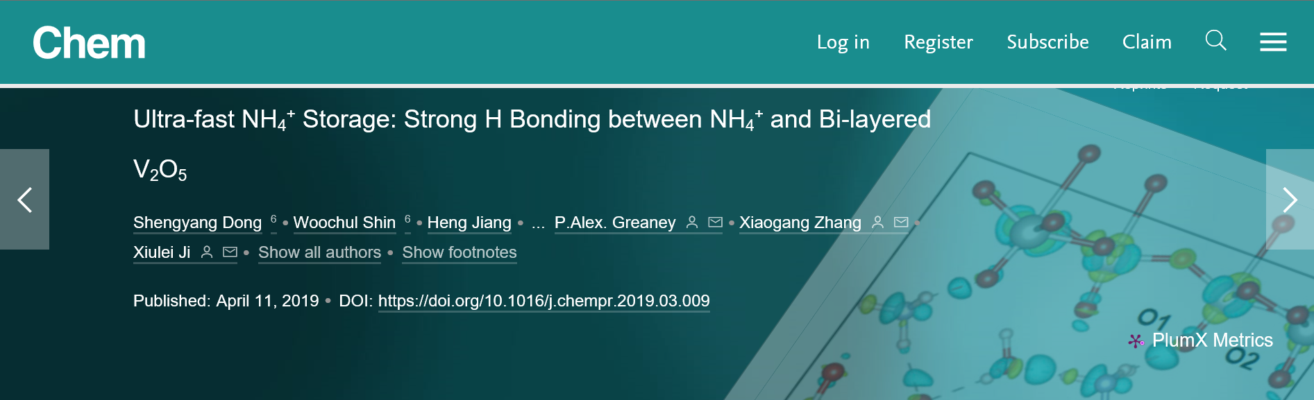 近日,炸金花平台 炸金花平台 张校刚教授课题组与美国的俄勒冈州立大学、加州大学河滨分校、阿贡国家实验室等中美联合研究团队在超高功率储能器件方面取得重要研究进展。相关研究成果(Ultra-fast NH4+ Storage: Strong H Bonding between NH4+ and Bi-layered V2O5”)以炸金花平台 为第一单位发表在《Cell》子刊《Chem》(化学类顶级期刊;IF=14.104)上,第一作者是炸金花平台 炸金花平台 的博士研究生董升阳。