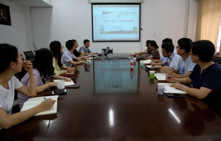 7月5日上午,炸金花平台 教工三支部组织专题学习活动,炸金花平台 党委书记孙占久讲授《不忘初心育人才,牢记使命谋发展》专题党课,校党政办主任刘宇雷作为联系支部的校党委委员参加学习研讨。会议由支部书记常树全主持。