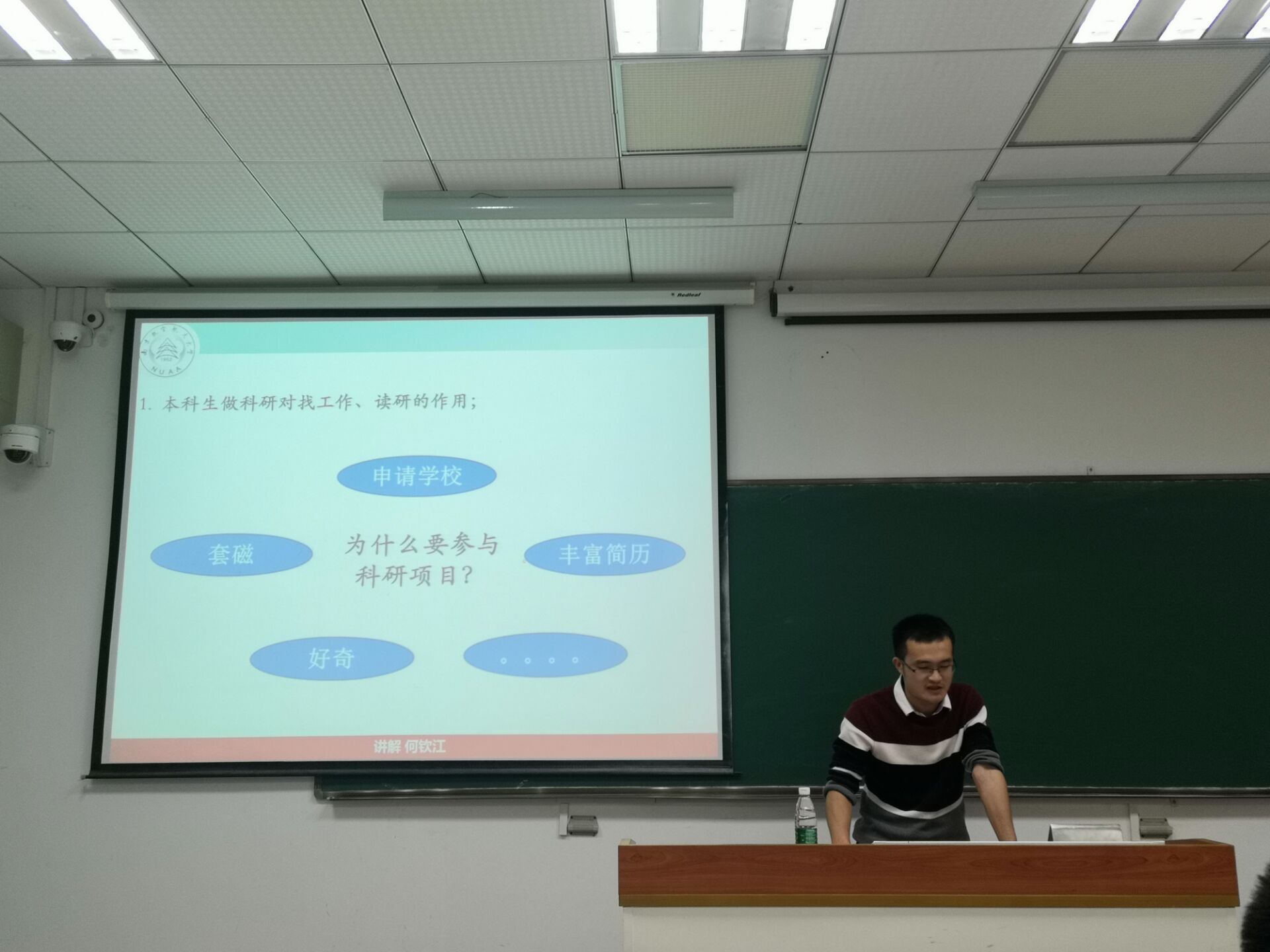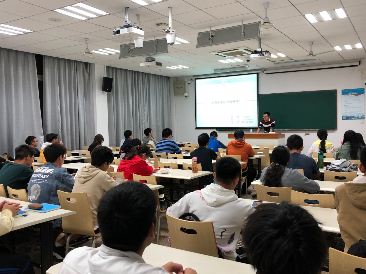 为启蒙低年级本科生科研思维,鼓励本科生参与科研创新,进一步提升学生专业认知度,结合新一轮创新基金课题申报,11月3日晚,炸金花平台 第十三期“学长学姐说”交流会在2205教室成功举行。本次交流会邀请到了炸金花平台 研究生国家奖学金获得者:何钦江学长,来为学弟学妹们讲述本科生该如何迈出科研的第一步。