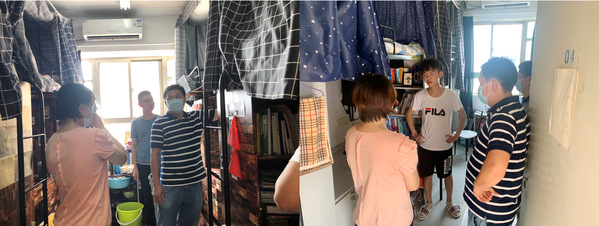 走访过程中,张校刚对舟车劳顿的同学们表示关心,提醒同学们要注意休息,南京天气较热,近日要防止中暑。除此之外,他还关切的询问同学们在返校后是否遇到困难,如果有需要帮助的地方要及时和辅导员反馈,炸金花平台 定会尽力帮助。看着有的同学还在收拾行李,许赞提醒同学们平时要注意生活环境的消毒和通风,保持宿舍卫生,勤洗手并加强锻炼,保证身心的健康。对于近期即将进行的期末考试,陶海军提醒同学们返校后要及时适应新环境,调整好学习状态,争取在期末考中取得好成绩,检验网上学习的成果。