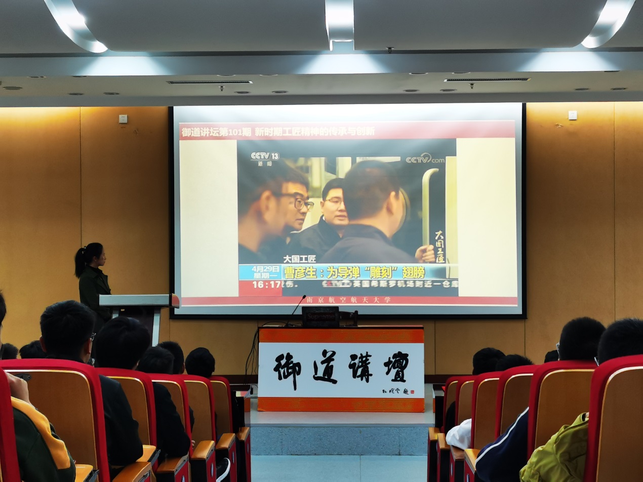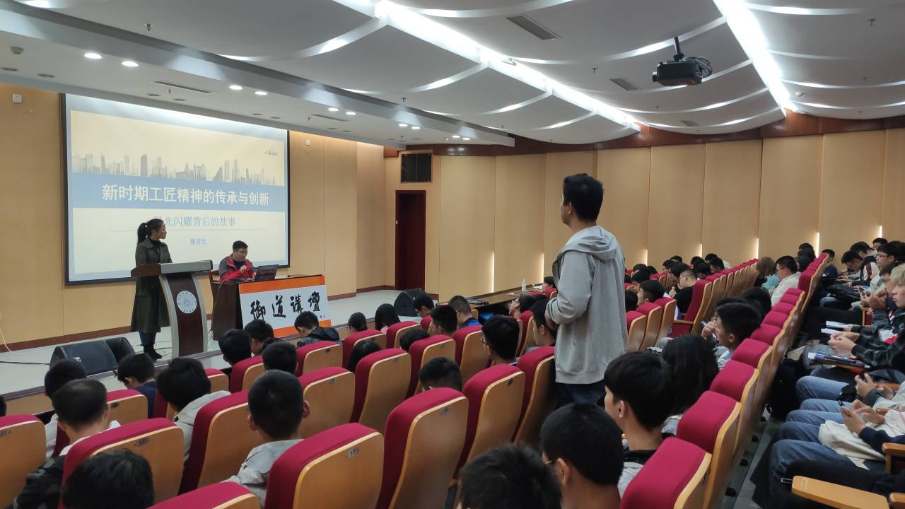 本次讲座以一段新闻联播《大国工匠,匠心报国》的报道视频开始,视频向我们展示了曹彦生匠心报国的真实例子。曹彦生对“工匠精神”的执着追求,对超凡品质的主动探寻让现场的每一位师生倍感鼓舞。