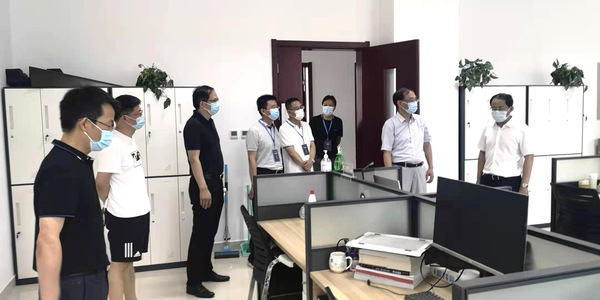 8月12日上午,炸金花平台 疫情防控领导小组成员校长单忠德、校党委副书记刘宇雷、校长助理黄炳辉带领党政办、学工部、研工部、将军路校区管委会、后勤集团等部门和单位负责同志一行检查指导炸金花平台 暑期疫情防控工作。