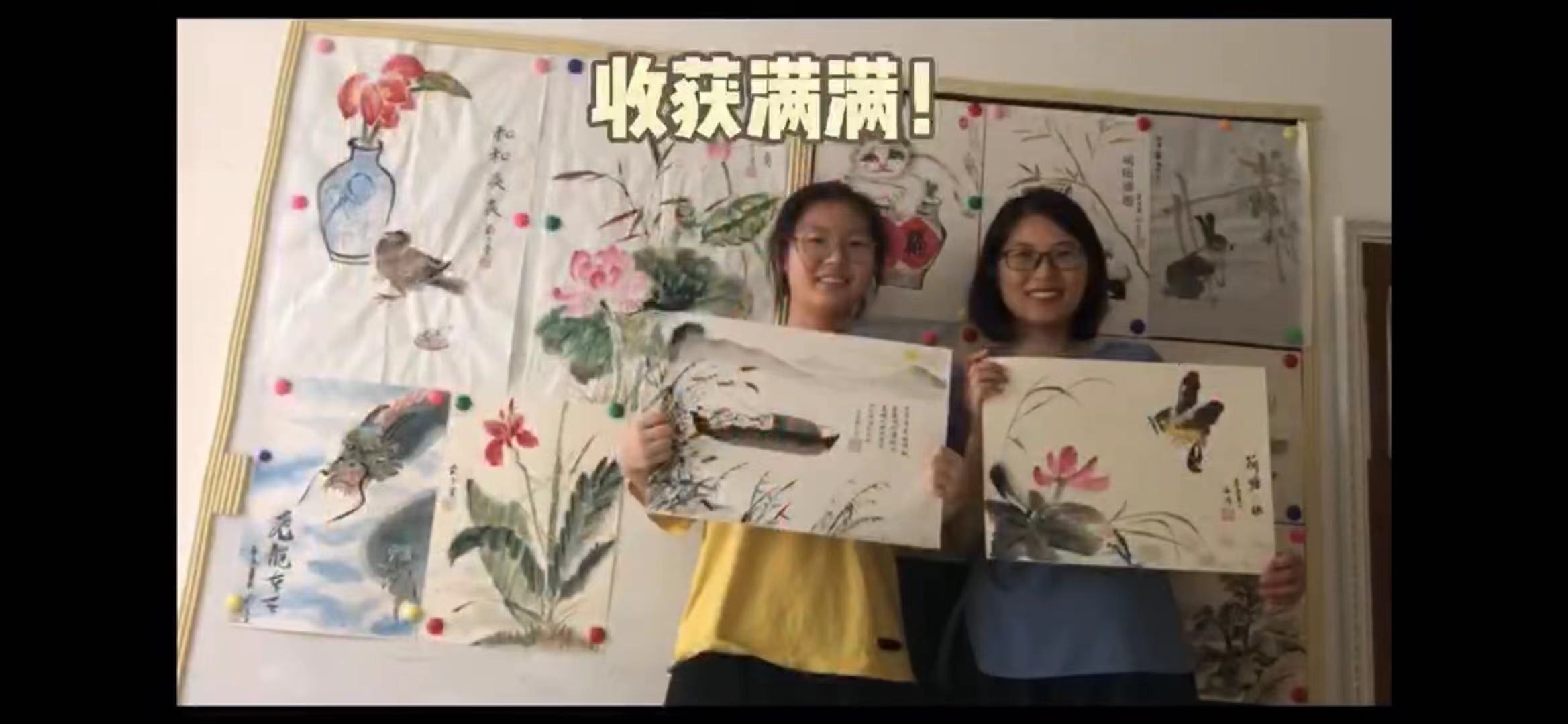 同样我们还收到了第一期才艺秀作品,投稿的是化学系才女谭淑娟老师,今天她给大家带来的是“国画日常”,视频中她与女儿一同作画,勾、擦、点、染,熟练的技巧,优美的线条,母女二人各显身手,一会的功夫优美生动的画作已跃然纸上。