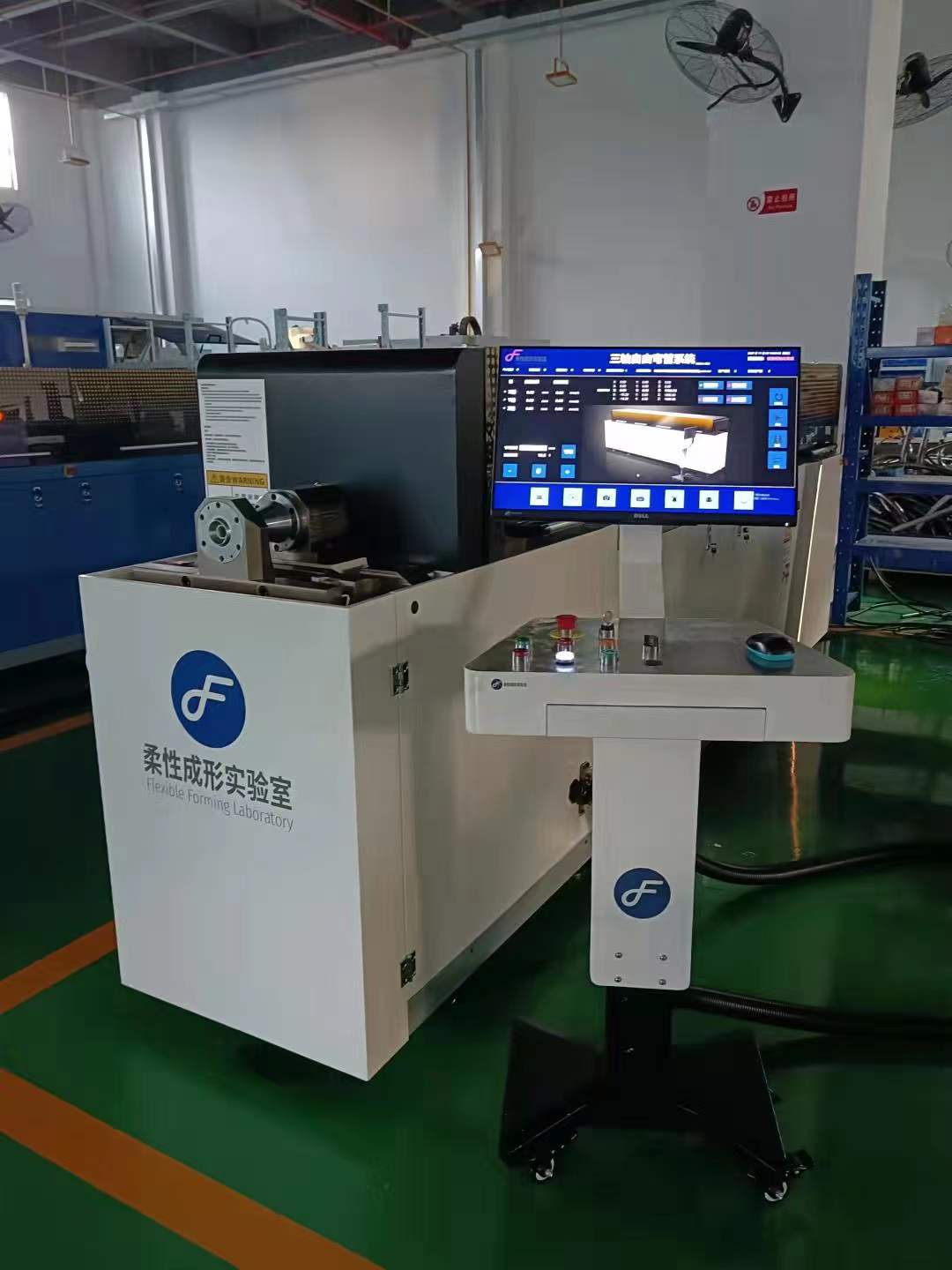 该项目是柔性成形技术及装备团队围绕模具结构设计优化、人性化交互操作系统、推进-弯曲协同运动系统以及全流程工艺参数优化方面开展系统研究工作。研制的金属管材矢量柔性弯曲成形装备,智能化水平更高、人机交互体验更高效、更加符合绿色制造的要求,可实现复杂形状金属弯管构件整体成形。