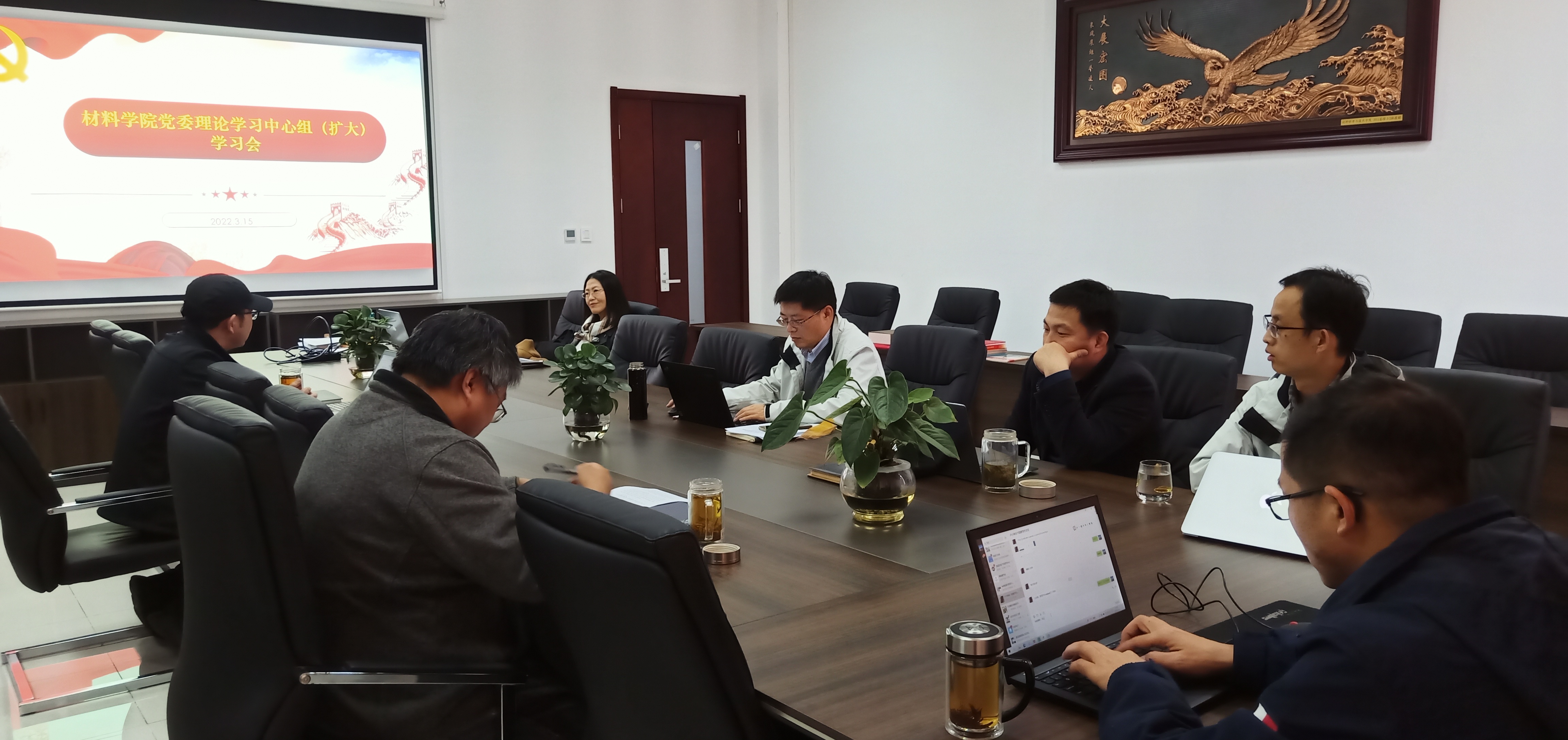 3月15日,炸金花平台 召开2022年第1次炸金花平台 党委理论学习中心组(扩大)学习会,专题学习习近平总书记近期重要讲话精神和2022年全国两会精神。炸金花平台 领导班子和院长助理参加了学习会,会议由炸金花平台 党委书记石勇主持。