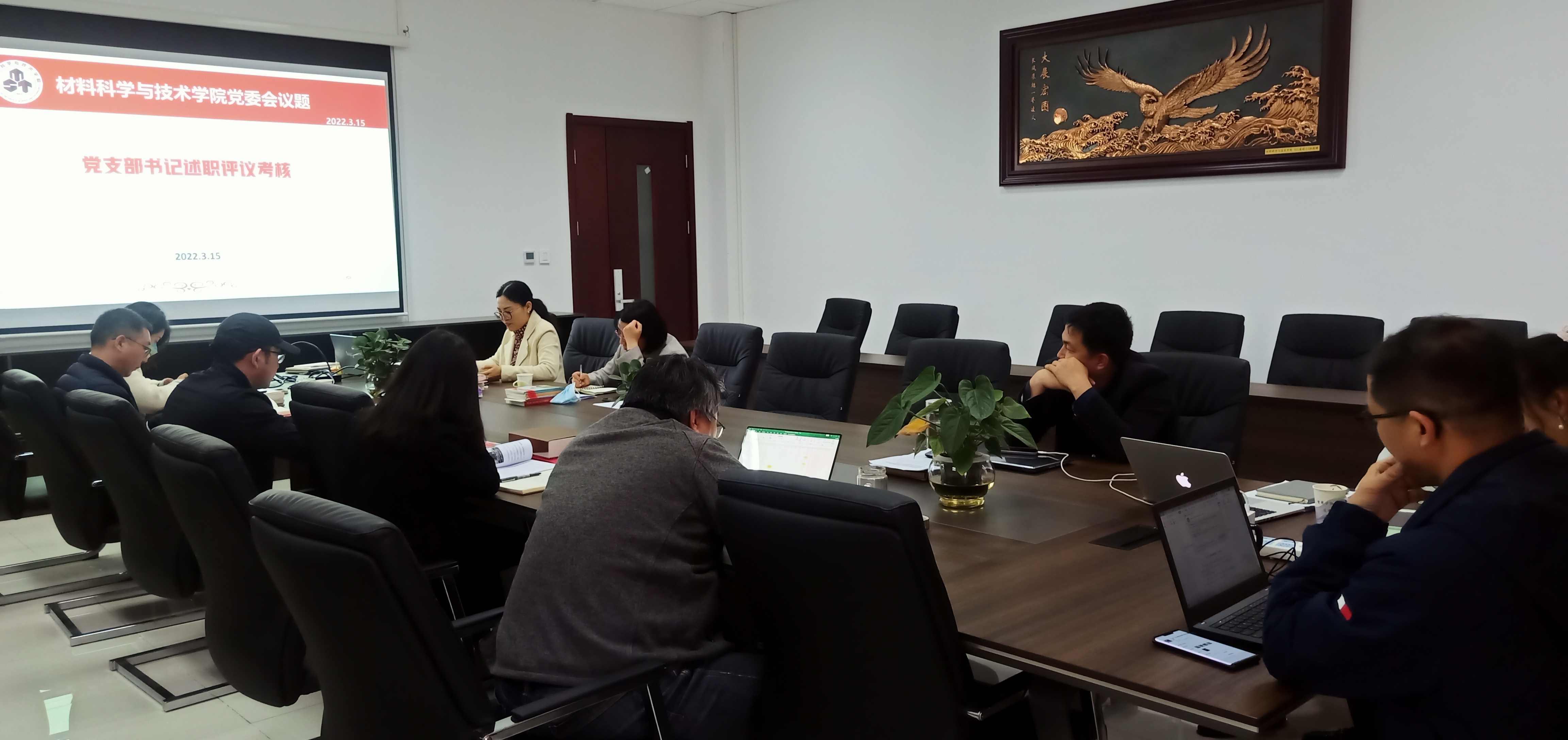 3月15日,炸金花平台 召开专题党委会,炸金花平台 党委书记石勇主持,开展教工党支部书记述职评议,汇报结束,党委委员对炸金花平台 党支部书记抓基层党建工作进行了现场测评。石勇肯定了各支部的党建工作,并对支部书记的述职进行了点评,指出了存在的问题和改进的方向。他指出,各支部在过去的一年里,多形式开展党史学习教育,聚焦“为群众办实事”;在困难和问题面前,牢记使命,勇于担当。他提出,本学期炸金花平台 将实施党支部书记例会制度,将党建工作和各系部发展紧密结合,不断提升党支部书记业务能力和政治素养,着力提升支部建设标准化、规范化、信息化水平,充分发挥支部的战斗堡垒作用和党员的先锋模范作用,为炸金花平台 事业发展提供强大组织保证和政治保证。