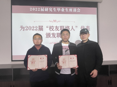 随后,院长张校刚、党委书记石勇分别为优秀毕业生代表、2022届“校友联络人”代表颁发荣誉证书和聘书。