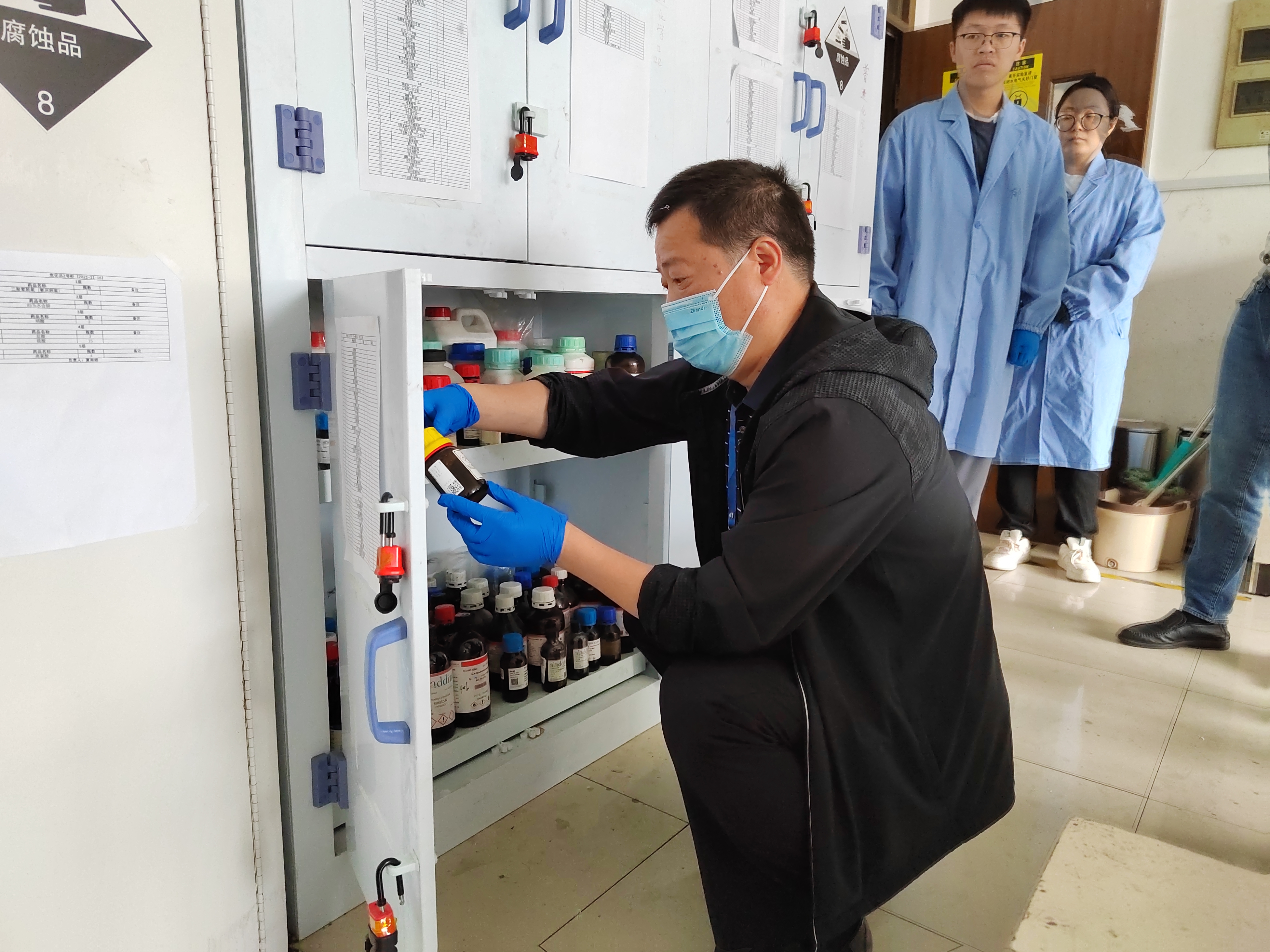 随后,检查组对炸金花平台 实验室安全管理的制度台账进行审阅,重点查看炸金花平台 安全责任体系、规章制度及落实、安全文化建设、安全检查及隐患整改、教育培训、应急预演及演练、排查治理,风险管理等档案资料,并与实验室安全管理人员进行了现场指导交流。在现场实地抽查环节,检查组对JD10楼和JA16楼实验室进行了详细的安全检查。