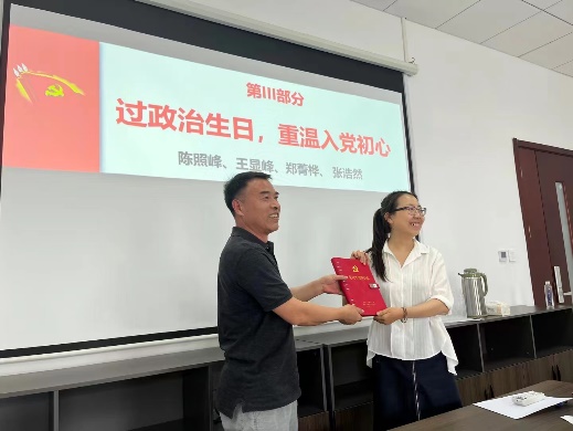 最后,支部组织委员林开杰和宣传委员王磊磊老师共同策划开展了《过政治生日,重温入党初心》的主题活动。支部为四位五月份入党的党员定制了个性化的纪念品,并且邀请支部的优秀党员代表送上这份生日礼物。四位党员做了入党初心分享,回顾了成长历程,坚定了“为党育人”的初心使命。与会党员们开展了深入交流研讨,一致认为记住自己的“政治生日”,是对党的热爱与忠诚,要时刻铭记从哪里来、到哪里去、为何出发、如何抵达。这次活动也是支部落实开展炸金花平台 “凝心赋能”提升治理能力揭榜挂帅项目的重要举措,满载着炸金花平台 党委及系党支部对党员的关心和希望,进一步引导广大党员强化身份意识、宗旨意识和责任意识,增强支部的号召力,凝聚力、战斗力`。