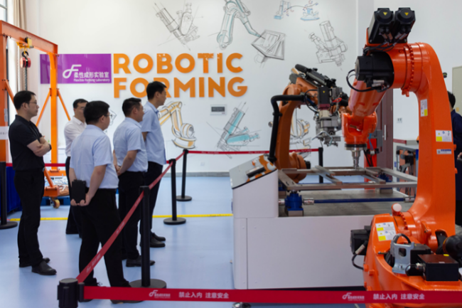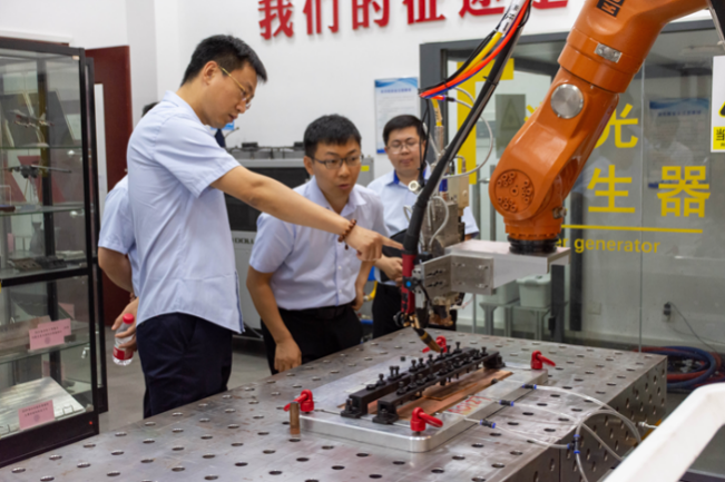 开沃新能源汽车集团一行首先参观了炸金花平台 的柔性成形与装备实验室、高效电化学储能实验室、激光焊接与精准再制造实验室以及金属构件激光增材制造实验室,并与各实验室教师就新能源汽车领域的新材料研发与成形制造技术应用进行了深入探讨与交流。