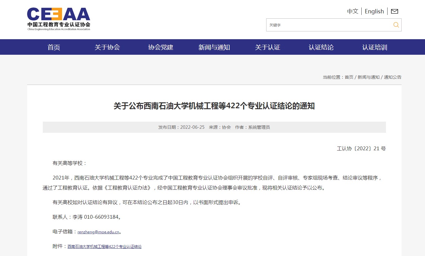 近日,中国工程教育专业认证协会正式公布了2021年工程教育专业认证结论,炸金花平台 核工程与核技术专业顺利通过本次认证,有效期为6年(2022年1月至2027年12月)。这是继材料科学与工程之后,炸金花平台 第二个通过认证的专业。