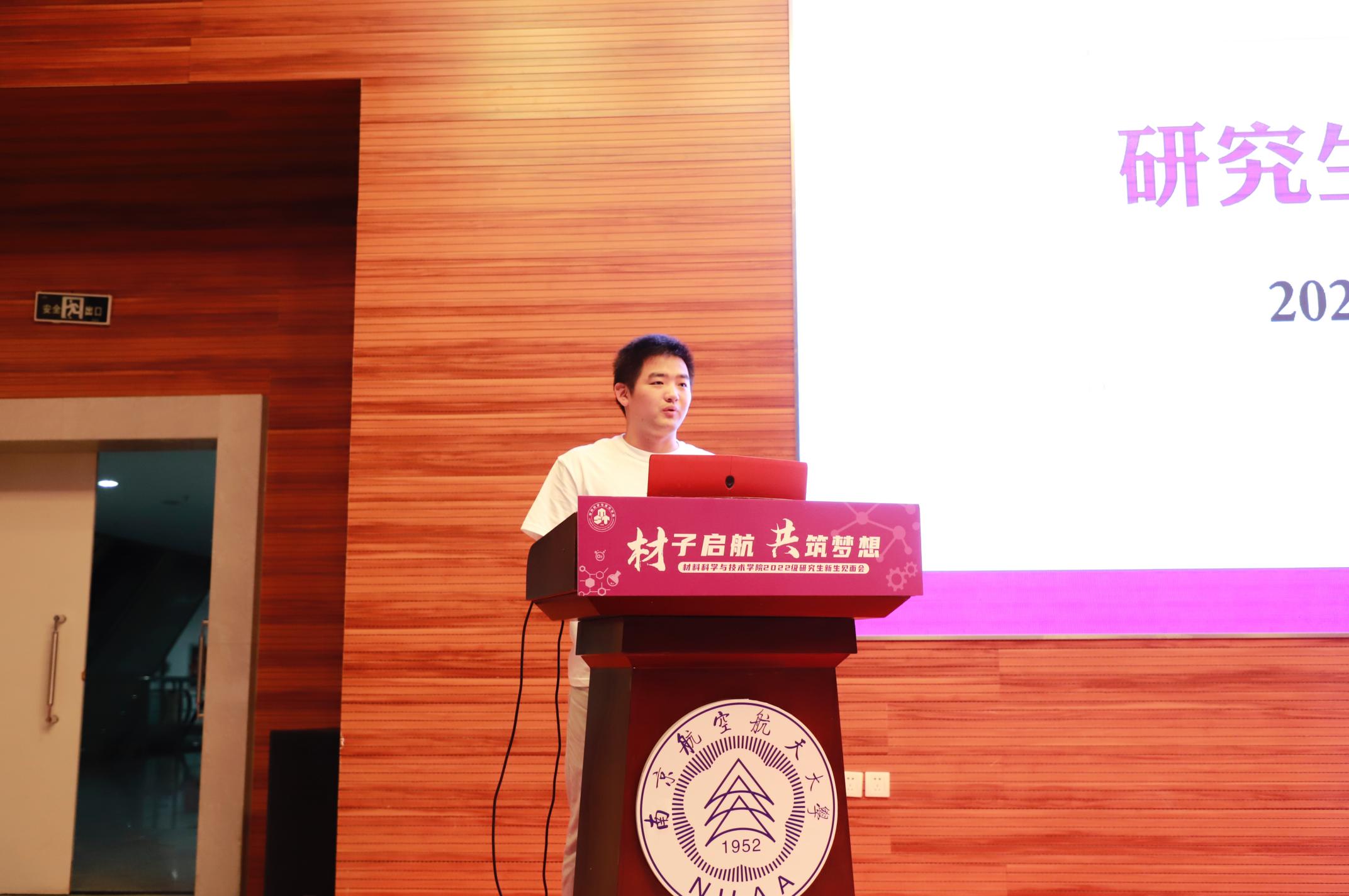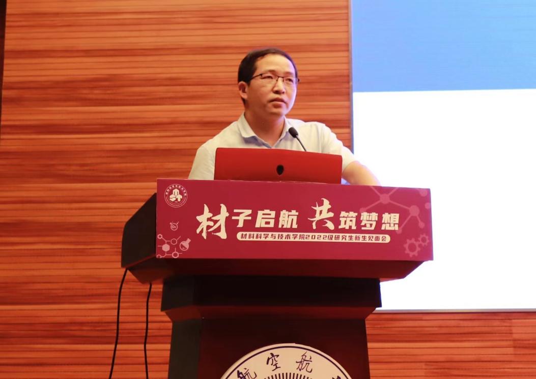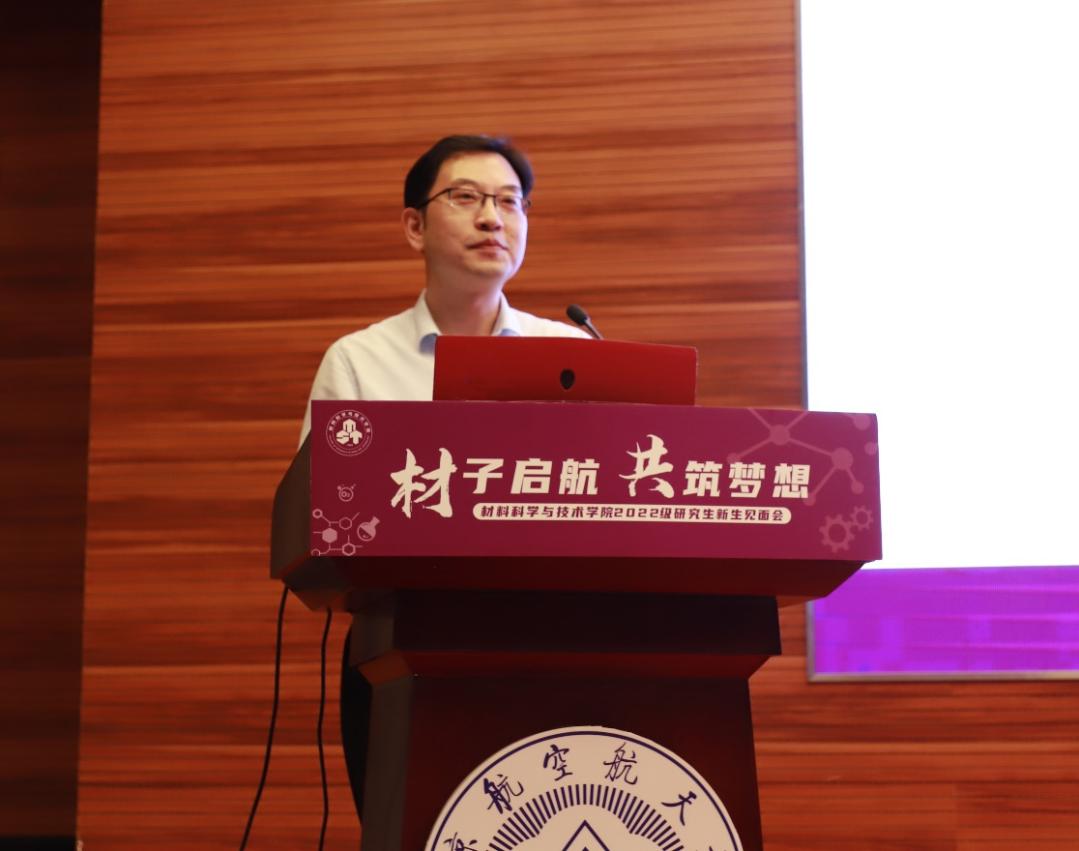 导师代表占小红以“仰望星空,脚踏实地,求索创新”为主题,从自信、自律、自强三点出发,寄语新生在未来的学习和科研生活中努力奋斗,早日投身于祖国航空航天事业。