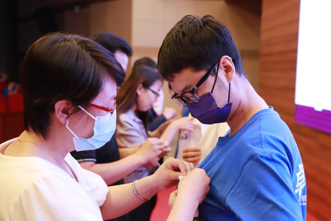各系老师为2022级研究生新生代表佩戴炸金花平台 校徽,台下全体新生共同佩戴校徽。从戴上校徽的那一刻起,就真正成为炸金花平台 研究生。