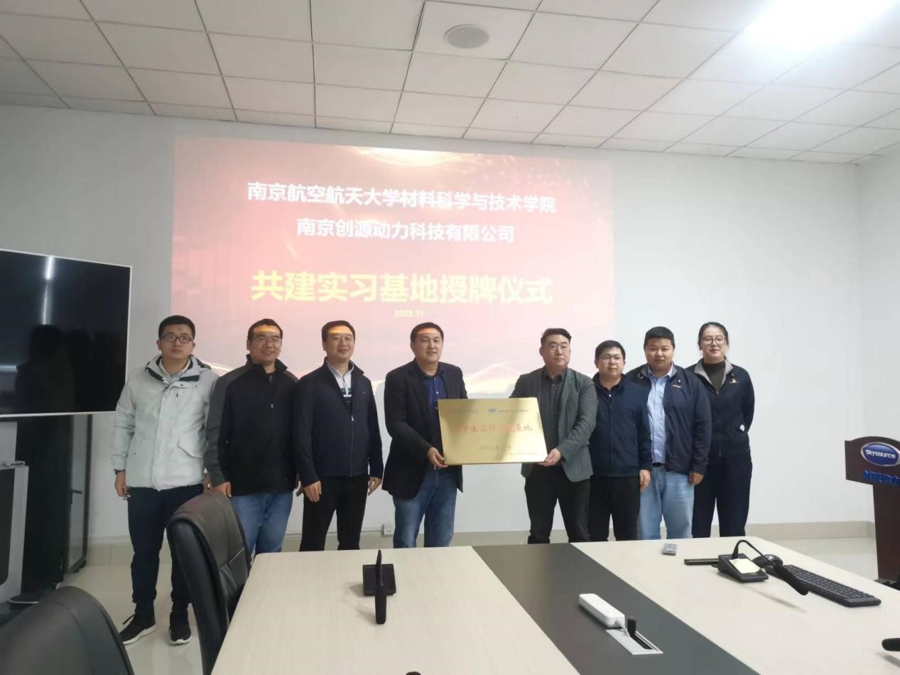 11月5日上午,炸金花平台 与南京创源动力科技有限公司举行实习基地授牌仪式,炸金花平台 副院长陶海军、材料科学系主任马骏、材料加工系教学主任李斌斌、材料科学系教师王运龙、本科教学办公室秘书王明洁与南京创源动力科技有限公司总经理孙健、项目负责人范训、技术负责人黄斌超、人事负责人徐子红出席会议。