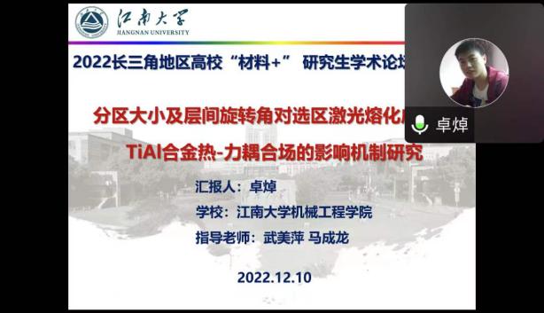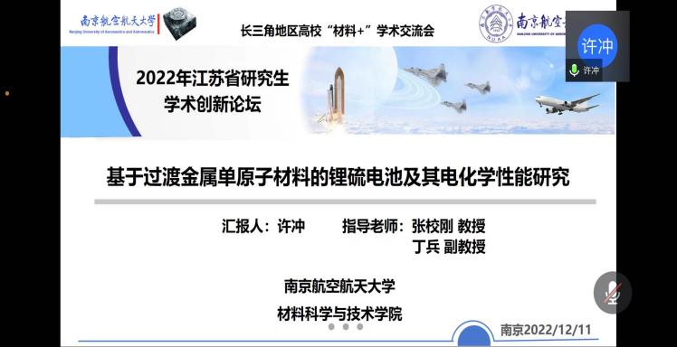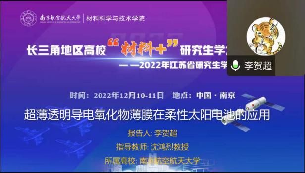 12月10-11日,由江苏省教育厅工学 3 类教指委主办,炸金花平台 炸金花平台 承办的长三角地区高校“材料+”研究生学术交流会暨2022年江苏省研究生学术创新论坛活动顺利举办。来自北京大学、浙江大学、北京航空航天大学、上海理工大学、东南大学、西北工业大学、南京理工大学、中国科炸金花平台 等十几所高校的40余名学生通过线上的形式进行学术成果交流与分享,百余名师生聆听报告并参加讨论。