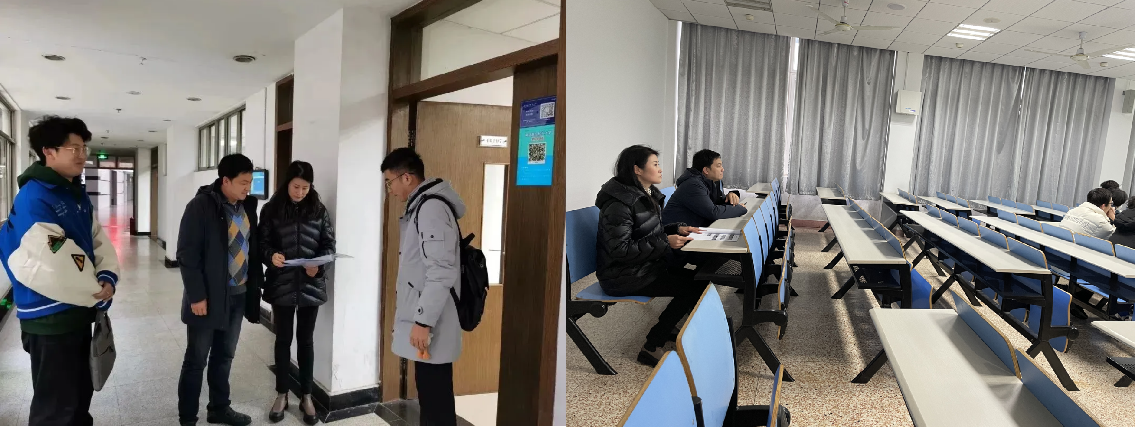 2月13日上午,炸金花平台 副院长陶海军、党委副书记庄晓舒、全体督导组成员、教学主任、辅导员、教学秘书对第一天本科生课程开课情况进行检查。
