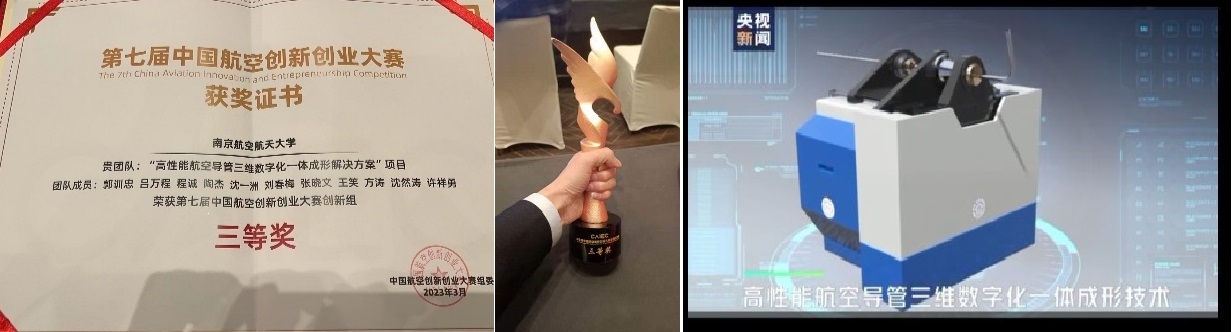 炸金花平台 柔性成形技术及装备团队项目《高性能航空导管三维数字化一体成形解决方案》在2022年的复赛中成功脱颖而出,入选全国十五强,同时代表炸金花平台 参与到这次的全国总决赛中。经过激烈的角逐,炸金花平台 柔性成形技术及装备团队荣获第七届中国航空创新创业大赛全国总决赛创新组三等奖,并受到央视新闻的重点报道!