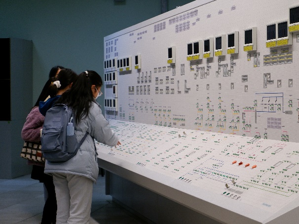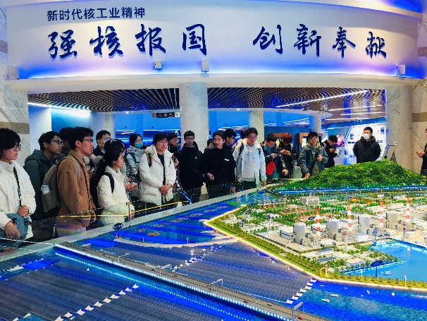 在科技馆,同学们观看了大型动态沙盘、反应堆压力容器、蒸汽发生器等实物模型,进一步了解了中国核电发展历史,切身体会了核工程学科的内涵与精髓。现场交流热烈,同学们围绕核电安全、核电技术和环境保护等问题与现场讲解员开展互动。