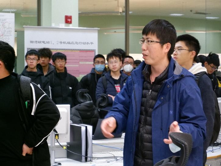 同学们来到田湾核电站模拟机房,通过机房内陈列的模拟系统了解核电站基本运行原理。讲解员细致地为同学们讲解核电站运行工况和事故状态,复杂精密的系统让同学们大开眼界,同时大家就核电基本原理、相关技术发展等问题与讲解员积极交流。通过老师的讲解,同学们进一步深化了对专业知识的了解。