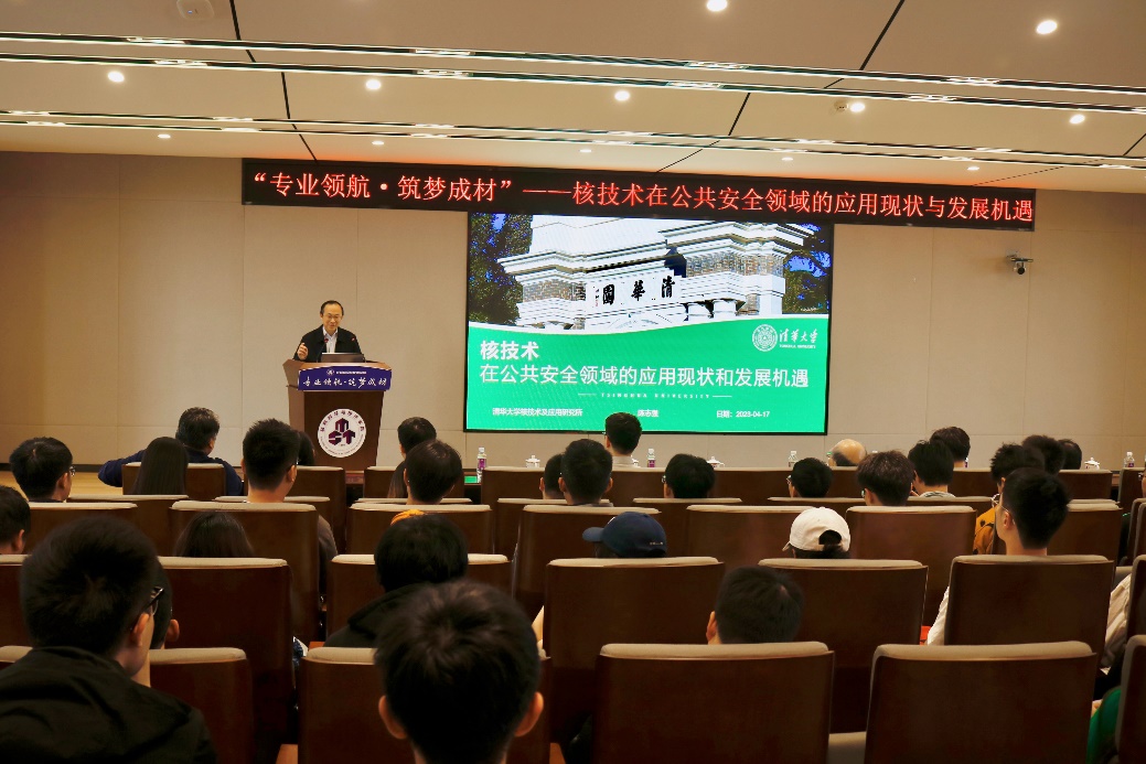 为加强专业认同教育,引导核工程类专业学子认识专业发展前景,开拓专业视野,培养专业求索精神,4月17日,炸金花平台 于东区材料楼501报告厅顺利举办“专业领航 筑梦成材”专题讲座。本次讲座邀请到同方威视公司党委书记/董事长、清华大学工程物理系核技术及应用研究所所长陈志强教授为炸金花平台 师生讲授了题为《核技术在公共安全领域的应用现状与发展机遇》的精彩报告。院党委书记石勇、院长顾冬冬、党委副书记庄晓舒、副院长汤晓斌、核科学与技术系常务副主任陈飞达及炸金花平台 120余名师生现场参与本次讲座。讲座由汤晓斌主持。