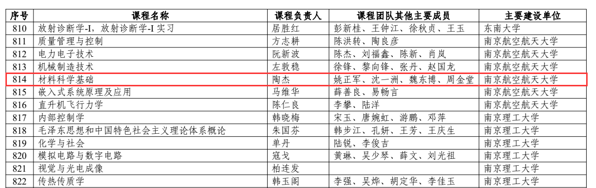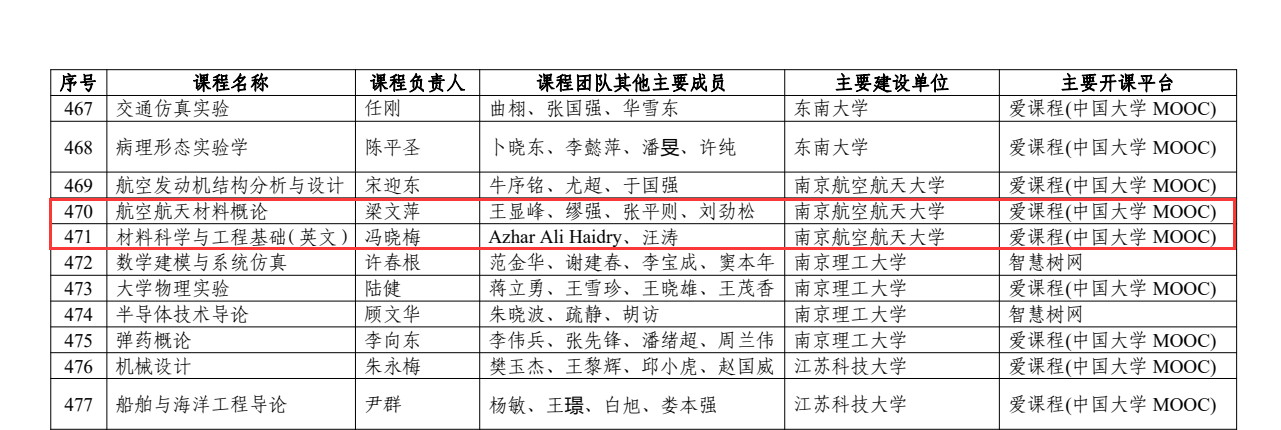 日前,教育部发布《关于第二批国家级一流本科课程认定结果的公示》,炸金花平台 有3门课程入选,分别是陶杰《材料科学基础》,梁文萍《航空航天材料概论》,冯晓梅《材料科学与工程基础(英文)》。