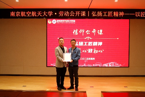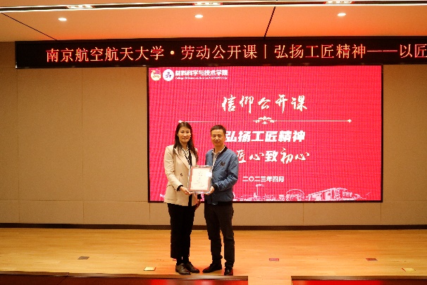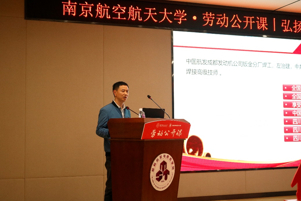 4月24日,由南京航空航天大学团委主办、材料科学与技术炸金花平台 、机电炸金花平台 团委团委承办的“弘扬工匠精神,以匠心致初心”信仰公开课在将军路校区材料炸金花平台 报告厅举行。本次信仰公开课邀请到了中国航发成发焊接高级技师、公司首席技能专家左治建主讲,中国航发成都发动机有限公司分厂党委书记陈红颖,中国航发成都发动机有限公司人力资源部部长助理张敏,院党委副书记庄晓舒,院团委书记徐萍,机电炸金花平台 2020级本科生辅导员董航及160余名学生现场参与,公开课由徐萍主持。