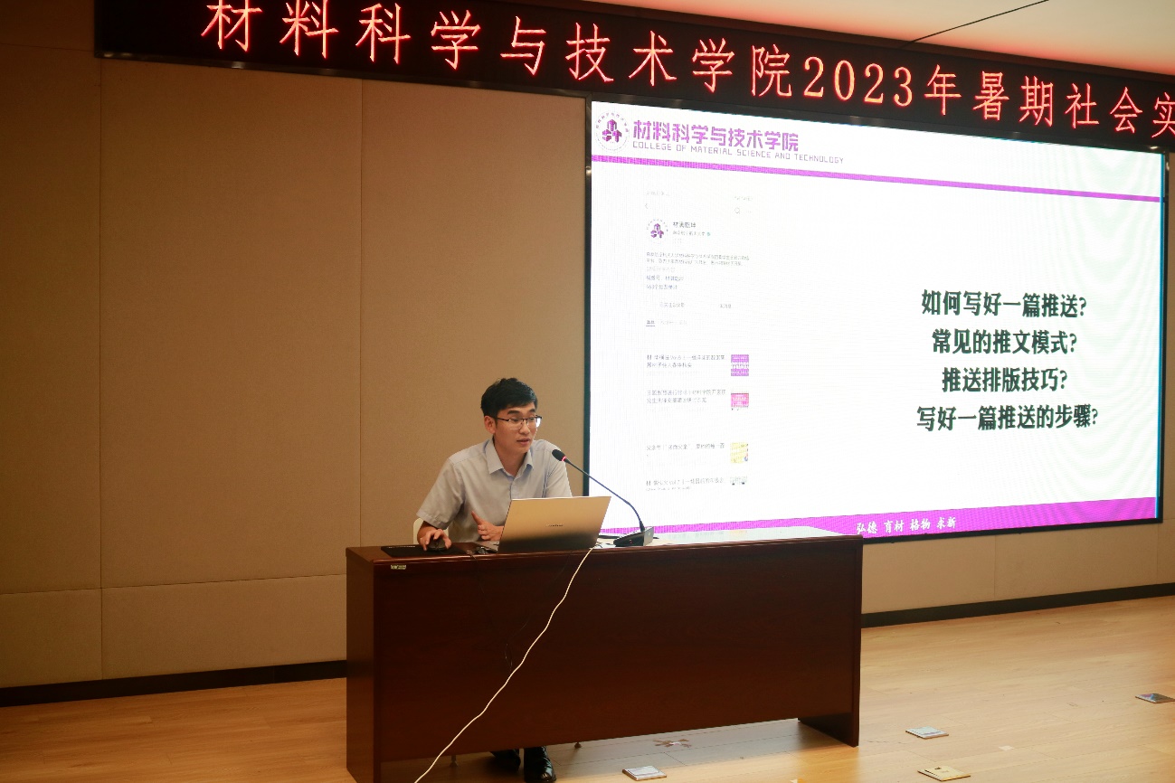 随后,刘召阳老师以秀米编辑器为平台进行了推文制作培训,指导学生分析受众群体、收集整理素材以及排版设计推文,为后续社会实践的成果宣传打下了良好的基础!