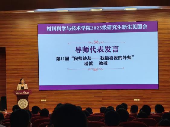 导师代表、第11届“良师益友——我最喜爱的导师”潘蕾教授,从“安全、健康、勤奋、变通”八字出发,鼓励新生牢固树立安全意识、增强体魄保持健康、敢于创新潜心向学、不甘平庸追求卓越,希望与各位新同学一起共同成长、共同进步。
