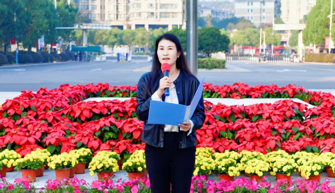 最后,院党委副书记庄晓舒为在场学生讲述国旗下的思政课。她带领同学们回顾马兰忠魂的故事,并提出了三点期望,一是筑牢思想根基,培养牢不可摧的爱国信念,播撒“信仰之种”;二是凝聚磅礴力量,肩负材料强国的国家使命,浇灌“青春汗水”;三是传承马兰精神,到祖国最需要的地方去,开出“奉献之花”。期待同学们能向陈达院士那样工作中严谨细致,生活中快乐浪漫,为材料报国的伟业贡献力量。