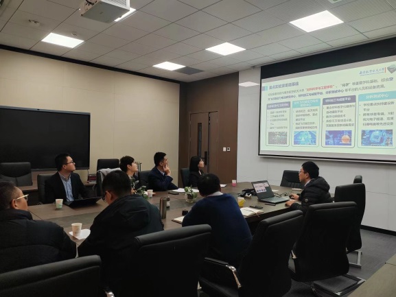 交流阶段,双方就技术课题联合申报、学术定期交流、设备共享、课程培训、实习基地建设及联合党建等方面达成一致。最后共同参观了江苏省储能技术重点实验室、校分析测试中心和御风园航空航天教育教学实践基地。