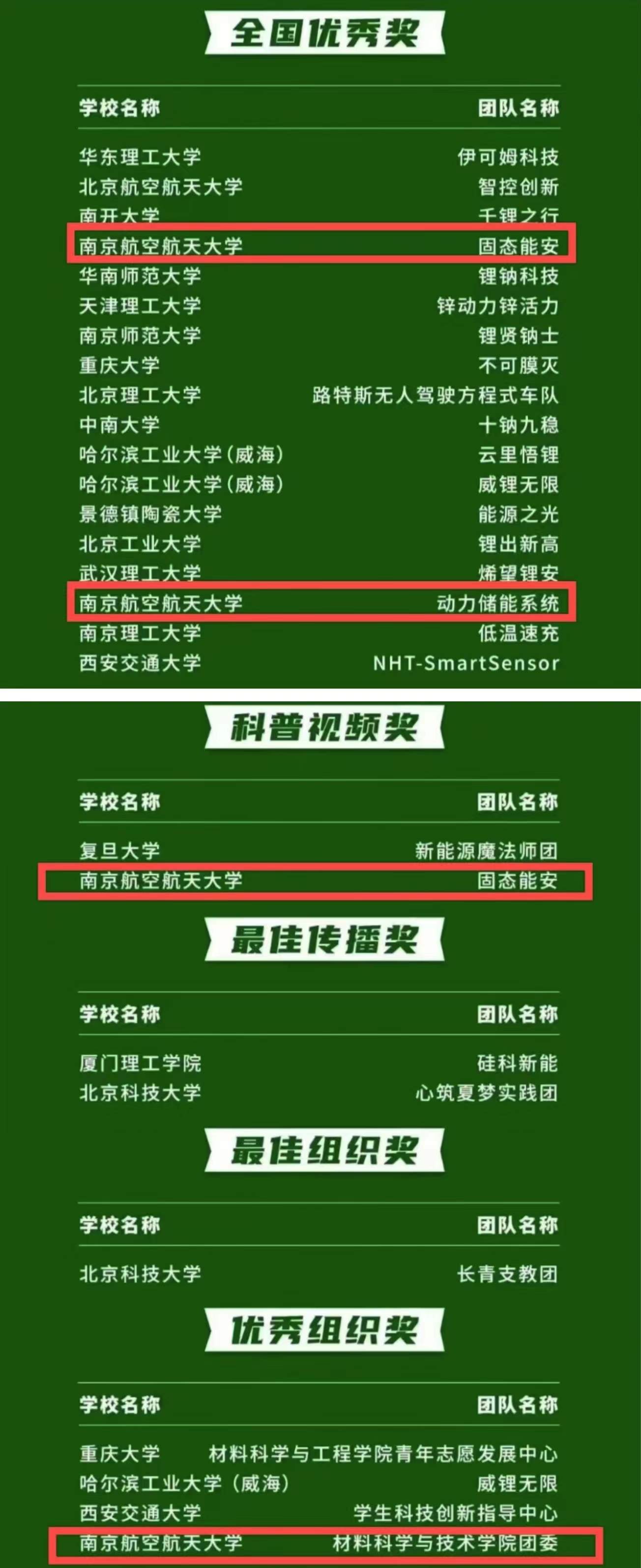 12月3日上午,2023年第六届中国大学生动力电池创新竞赛总决赛于LG新能源南京总部圆满收官。在此次竞赛中,炸金花平台 学子再创佳绩。“动力储能系统”团队、“固态能安”团队获全国优秀奖;“固态能安”团队获全国科普视频奖炸金花平台 团委获优秀组织奖。