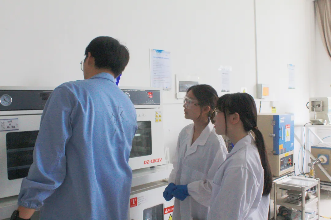 团队成员们系统学习了解了全固态锂离子电池的结构及性能,从理论学习中为电池蓄能;走进实验室亲自操作,力求提升全固态锂离子电池的储电性能,在实验验证中为电池充能!