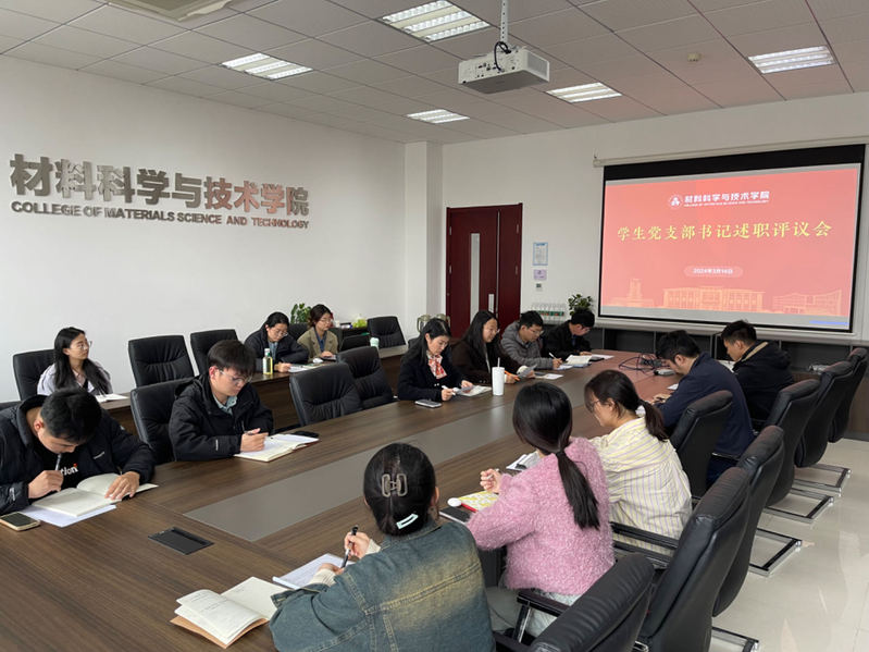 为推动全面从严治党向基层延伸,3月14日下午,材料炸金花平台 召开学生党支部书记述职评议大会。炸金花平台 党委副书记庄晓舒、辅导员代表、全体学生党支部书记参加了会议。会议由研究生辅导员于晴主持。