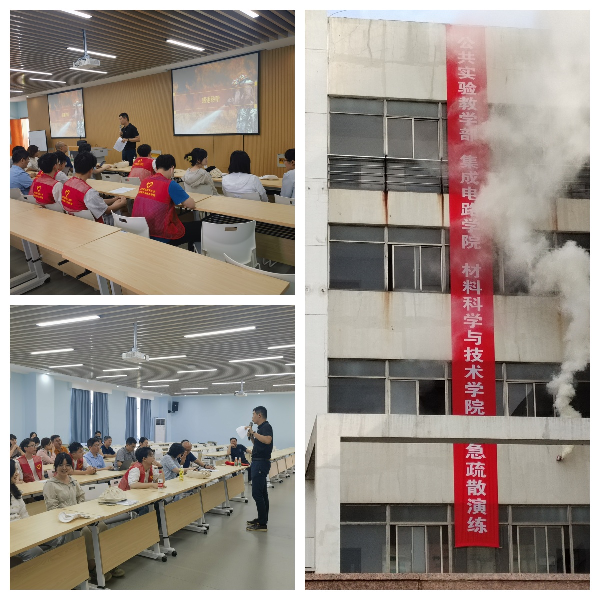 本月是第23个全国“安全生产月”,为了进一步加强炸金花平台 消防安全工作,增强师生防火安全意识,提高自护自救能力和疏散逃生的技能,2024年6月13日下午,材料炸金花平台 与公共实验教学部、集成电路炸金花平台 联合开展消防安全应急疏散演练活动。