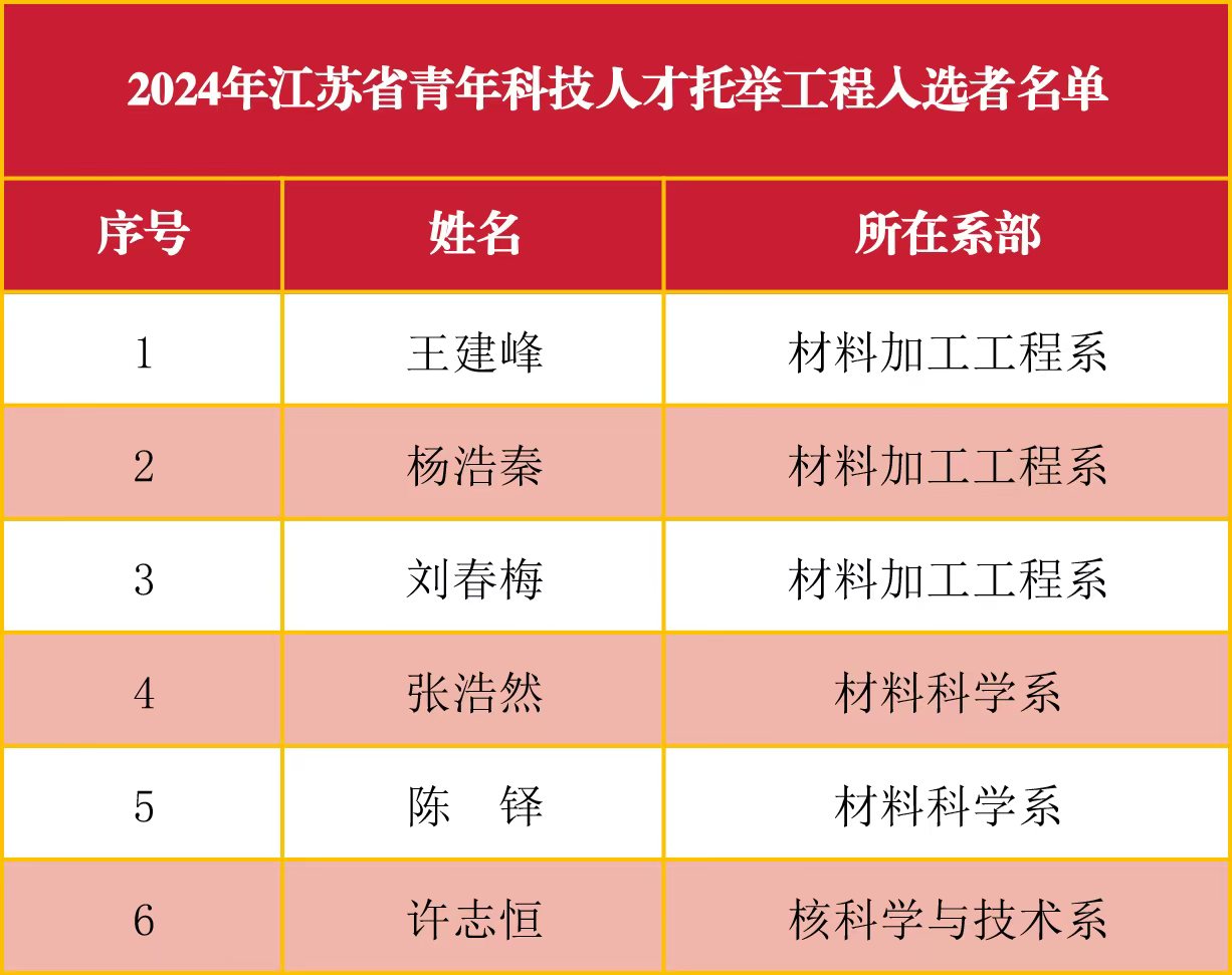 近日,江苏省科协公布2024年江苏省青年科技人才托举工程资助对象名单,炸金花平台 六位青年教师荣耀登榜,入选数量再创佳绩,炸金花平台 青年人才队伍建设取得新进展!
