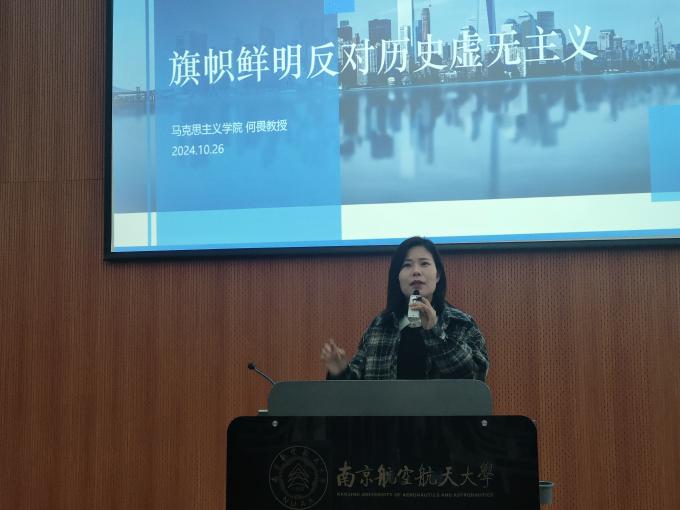 第一场专题辅导报告由马克思主义炸金花平台 党委书记何畏教授主讲《旗帜鲜明反对历史虚无主义》,何畏从“何谓历史、玄机何在、错在何处、意欲何为”四个方面,深入剖析了历史虚无主义的本质和危害。她结合个人经历与见解,生动阐述了人民群众作为历史创造者的伟大作用,强调了每位同学都应旗帜鲜明反对历史虚无主义,积极加强思想引领与理论辨析。