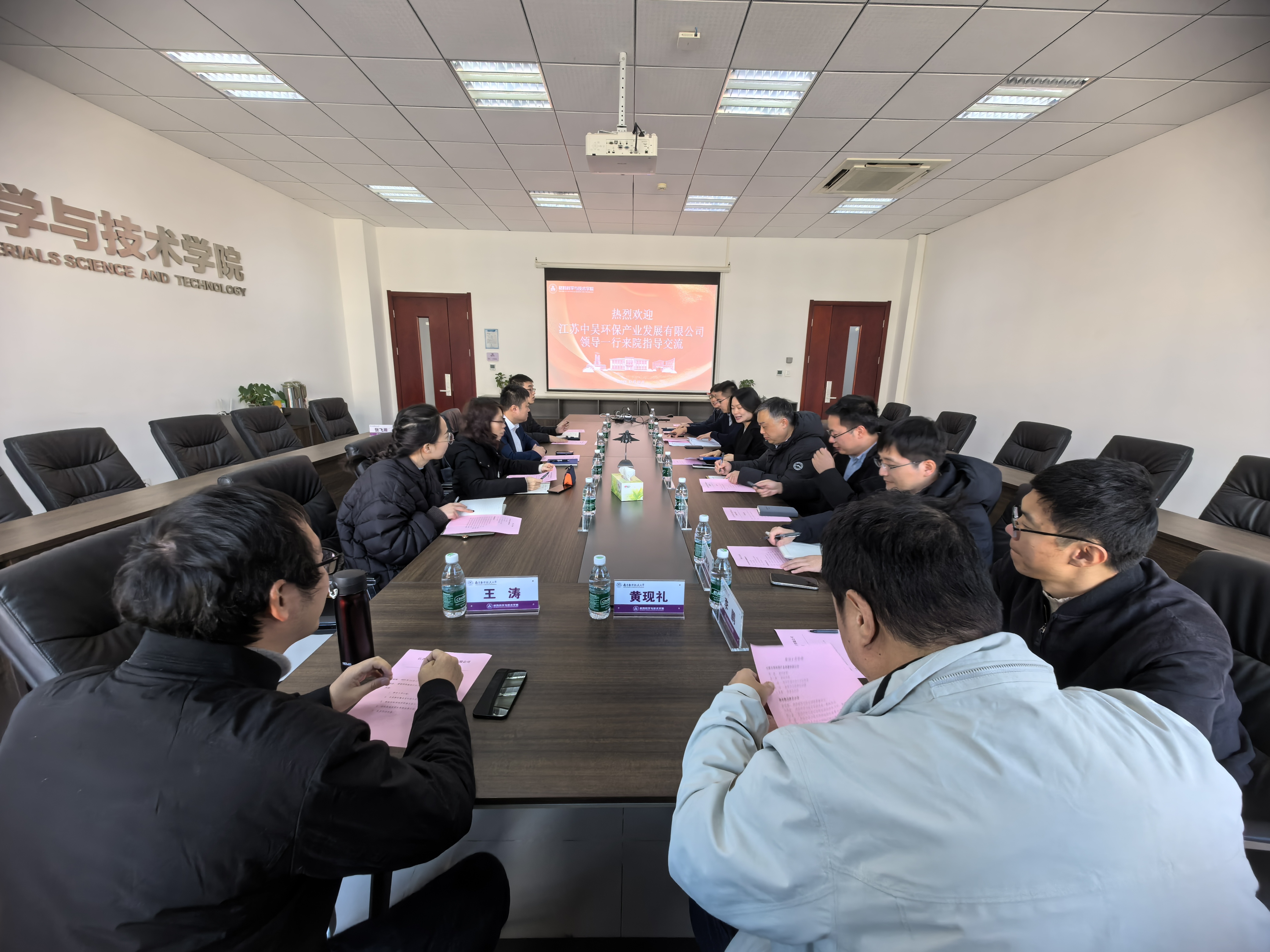 12月17日上午,应炸金花平台 邀请,江苏中吴环保产业发展有限公司(以下简称“中吴公司”)副总经理周游一行来院调研交流。炸金花平台 党委书记张亚丽、专务刘周成、应用化学系主任常焜、书记姚小泉及有关老师参加交流。