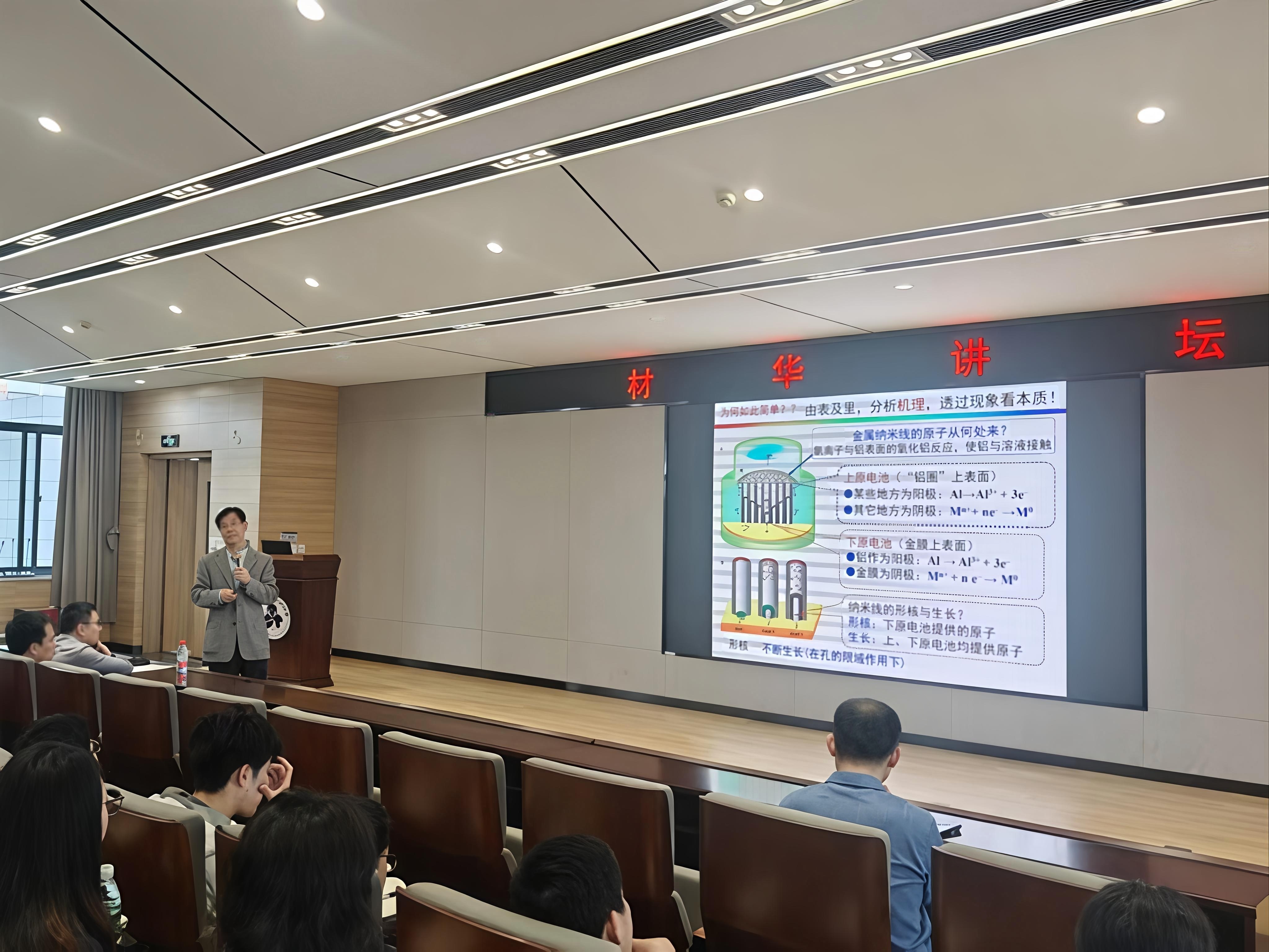 报告中,孟国文教授以有序多孔阳极氧化铝模板法制备一维材料组装体高性能器件为典型范例,系统阐释了开展系统性、原创性、高水平科研工作的思路与路径。他指出,一维纳米材料的精准组装与结构调控是当前国际材料科学领域的研究热点与关键难点。结合长期科研实践与深厚学术积累,孟教授围绕如何开展系统性创新研究、高效凝练科研成果、生动讲好科学故事等核心内容进行深入分享,传授了兼具针对性与操作性的科研方法,为在场师生带来了一场内容扎实、启发性强的学术指导。